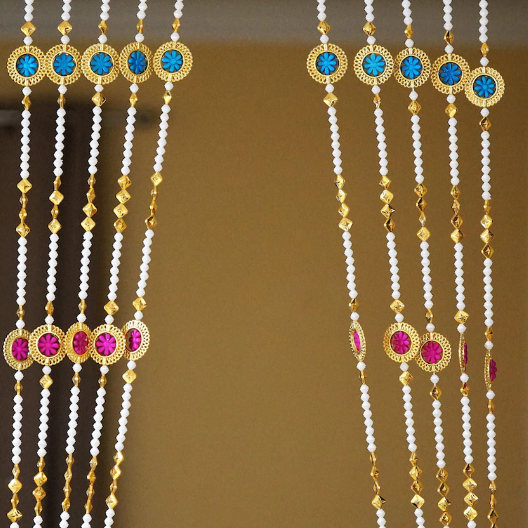 Boho Beaded Curtain Set – Colorful Indian Door Hanging